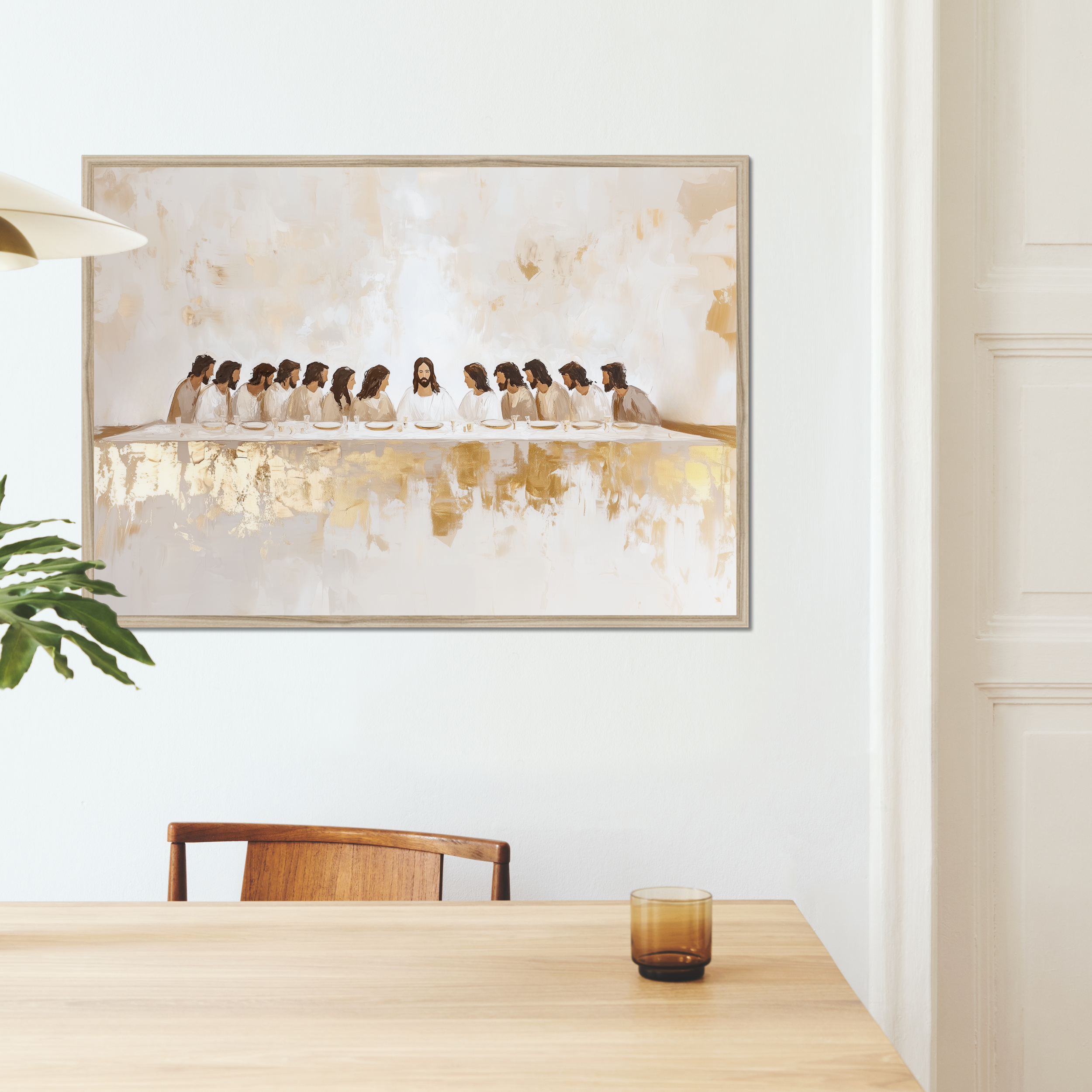 La Última Cena Abstracto Dorado - Lienzo con Marco Flotante